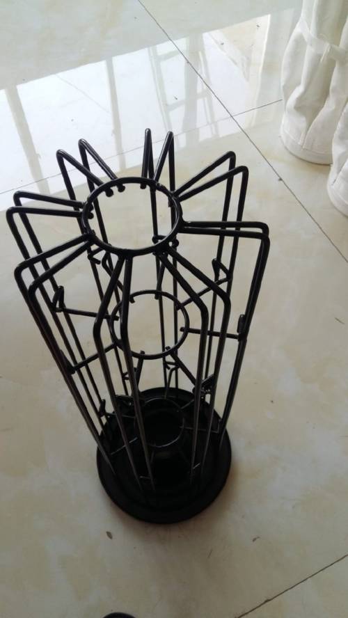 除尘骨架将压缩空气在极短暂的时间内高速喷向除尘滤袋,同时诱导数倍于喷射气量的空气形成空气波,使滤袋由袋口至底部产生急剧的膨胀和冲击振动,在短促的时间内形成滤袋往复地"鼓、瘪、鼓"的波浪形变形,使粉尘层发生变形、断裂,以块团状脱离滤布并受重力作用下落。清灰时,清灰气流在使滤袋膨胀变形的同时也穿过袋壁和粉尘层。除尘骨架是80年代初发展起来并得到广泛应用的除尘设备,其优点是清灰效率高,能有 效地保证较低的阻力和相当高的净化效率。